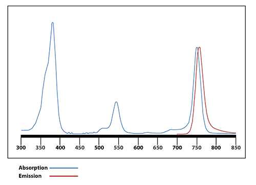 Chlorins possess a large violet absorption band excited by violet lasers and large stokes shift with red to near-infrared emissions between 600nm-725+nm.