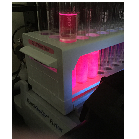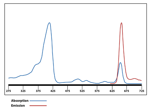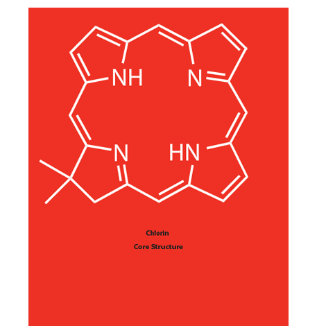 Chlorins possess a large violet absorption band excited by violet lasers and large stokes shift with red to near-infrared emissions between 600nm-725+nm.